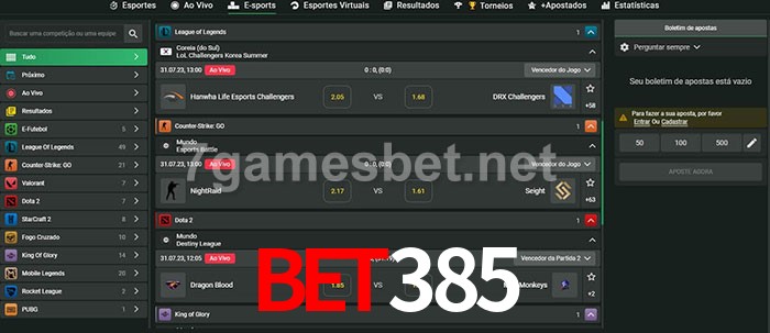 O bet385 oferece uma grande seleção de opções de apostas em e-sports com probabilidades competitivas